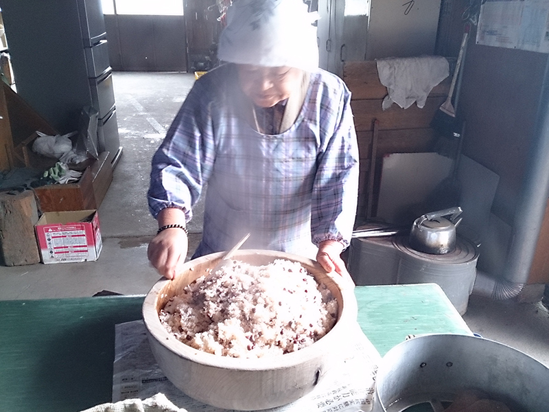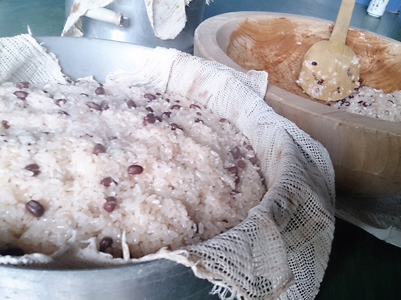 おばあちゃんが赤飯をこしらえてくれる。