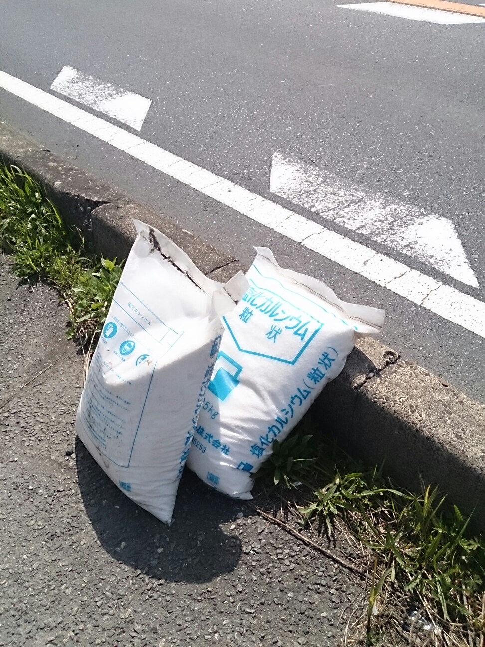 また道端に塩化カルシウムが落ちてた。