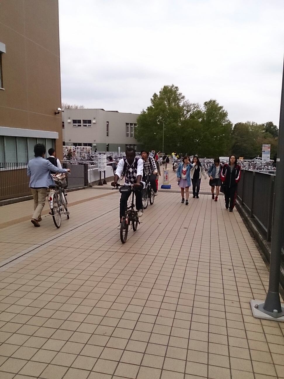 授業間はチャリがないと移動不可能なんだって。