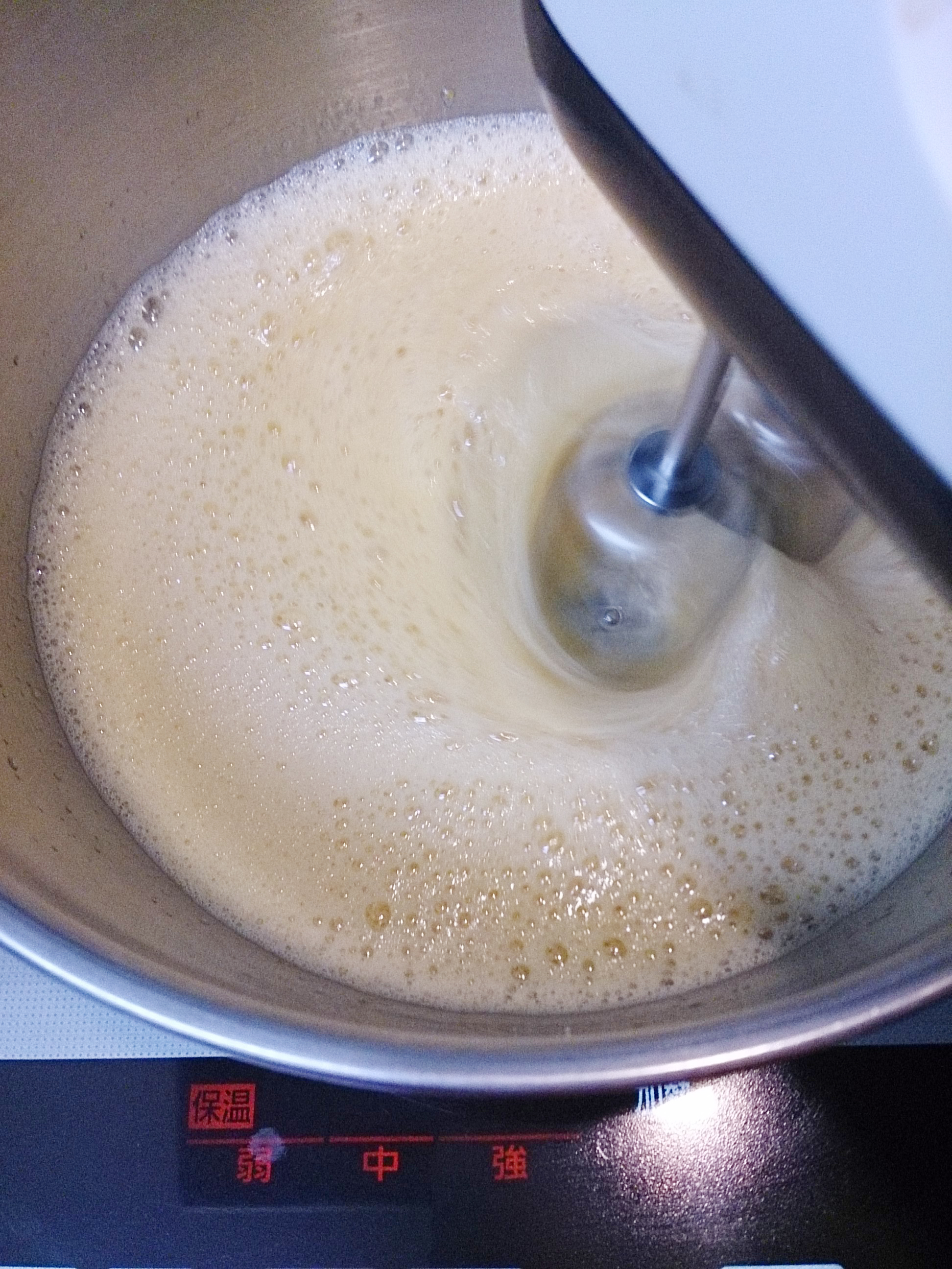 さらに、よわで1、2分撹拌して全体のキメを調えます。
