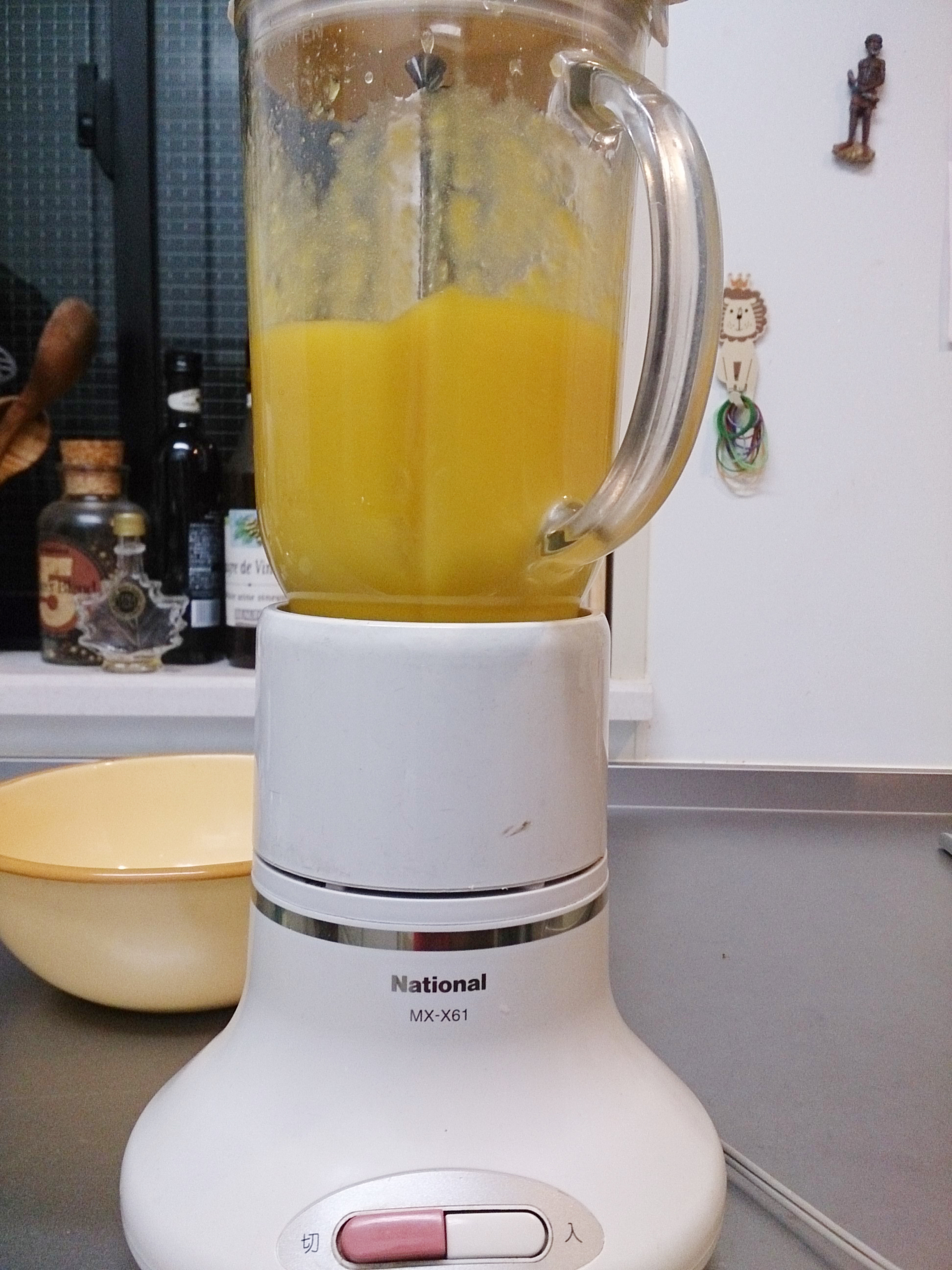 マンゴー(生でも缶詰でも)をミキサーでピューレにします。