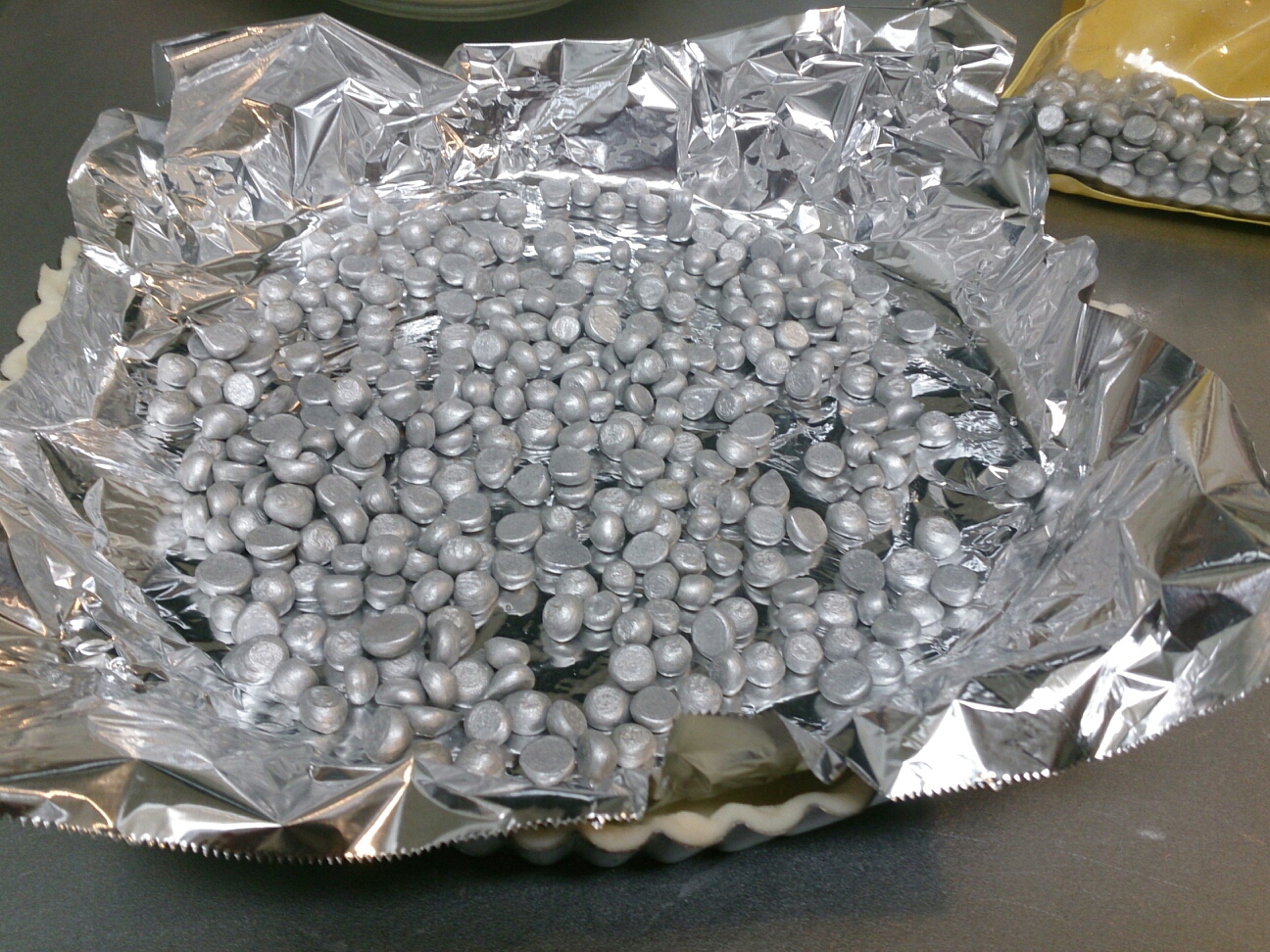 タルトストーンを乗せて190度のオーブンで15分焼きます。