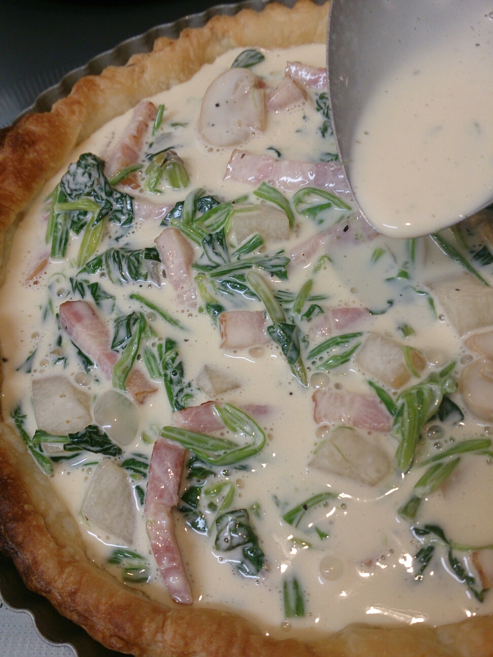 好きな具材(ここではベーコン・ほうれん草・マッシュルーム・じゃがいも)