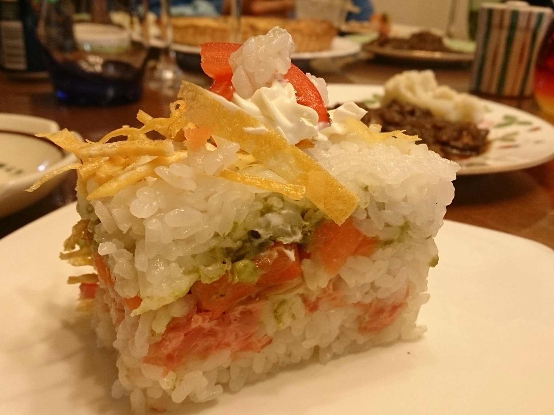 まぐろとサーモンとアボカドのお寿司ケーキ