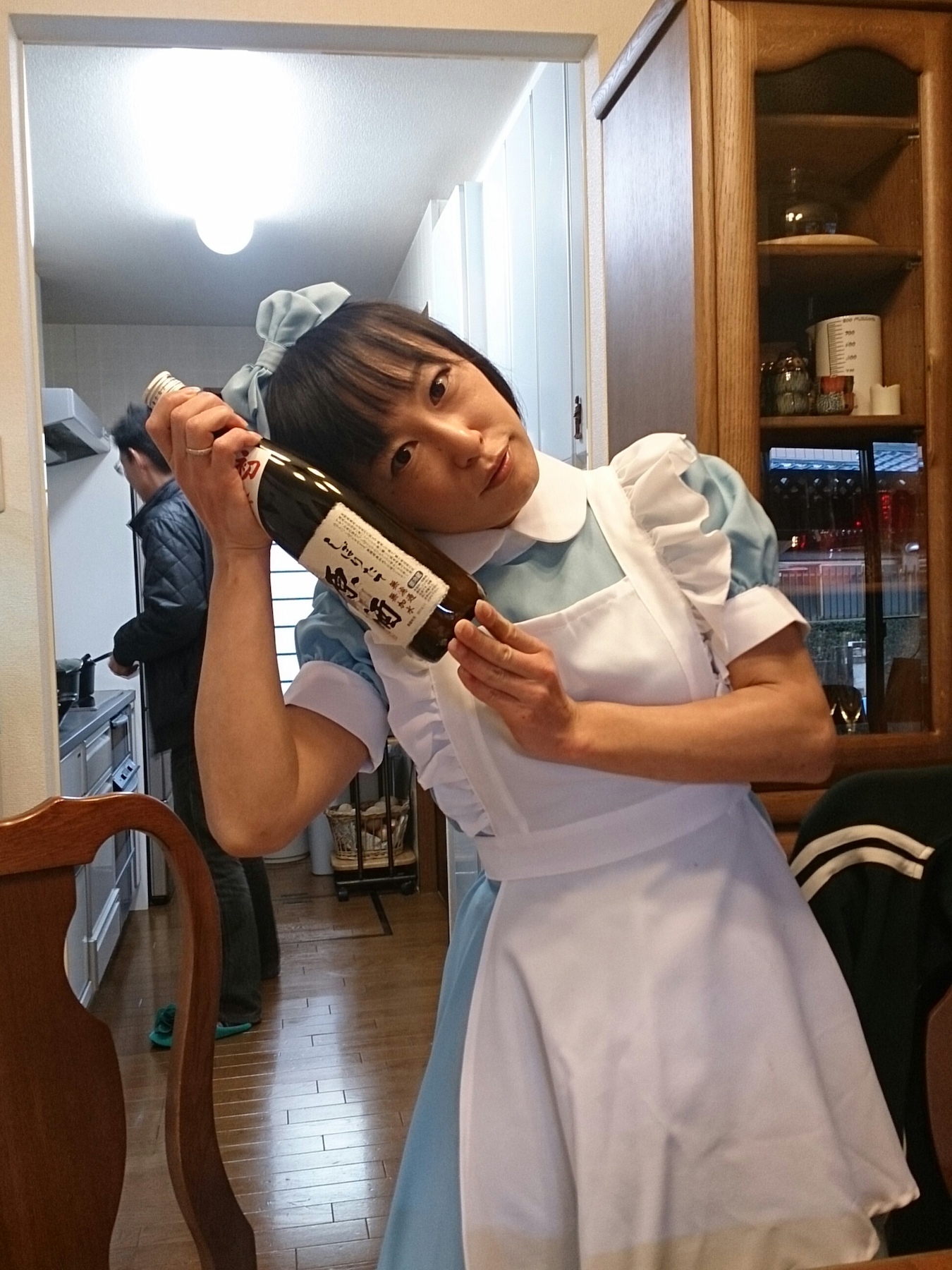ちゃんとボトルの底を持ってサーブしてる。