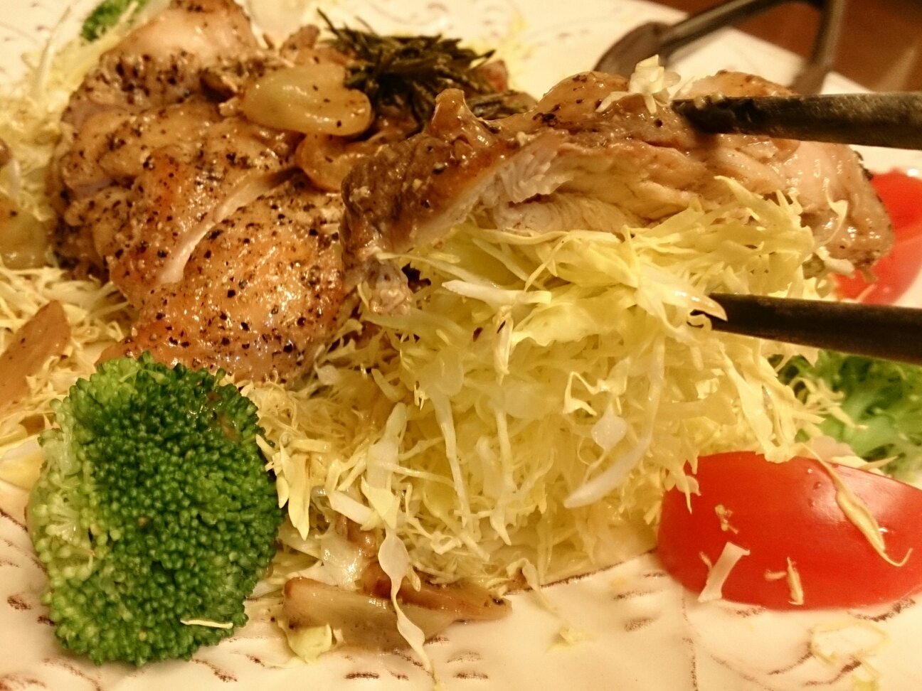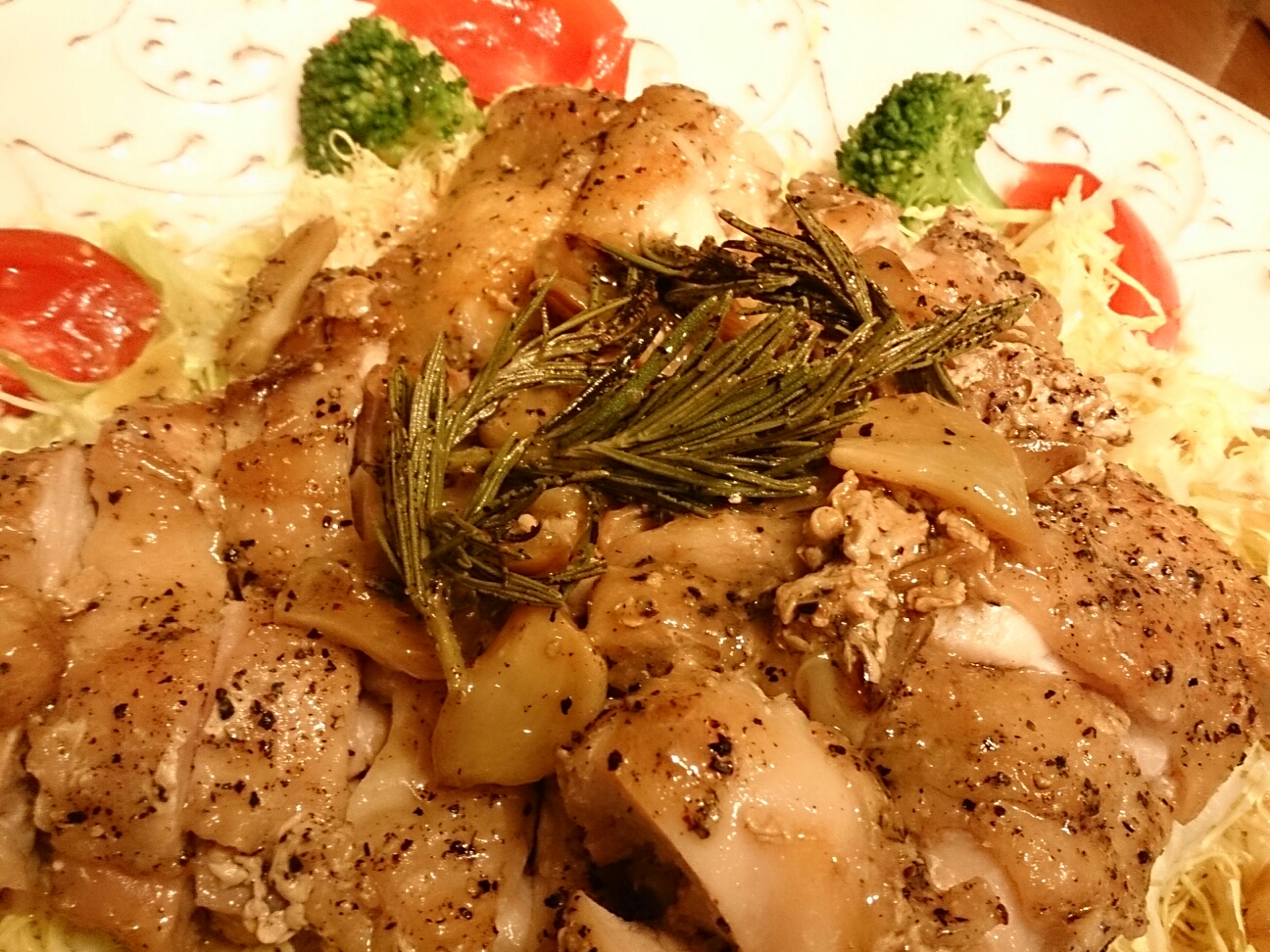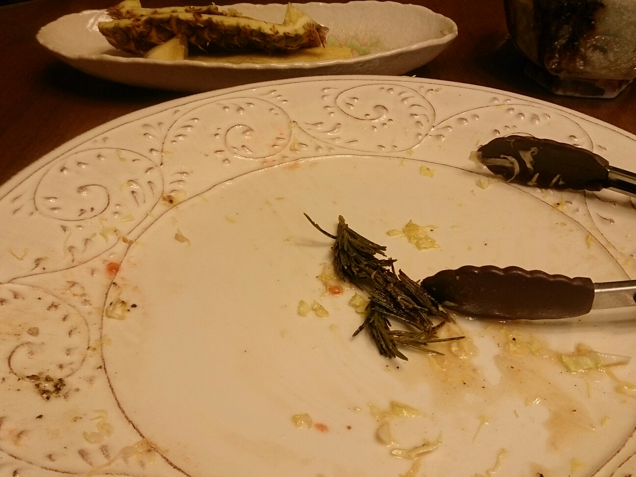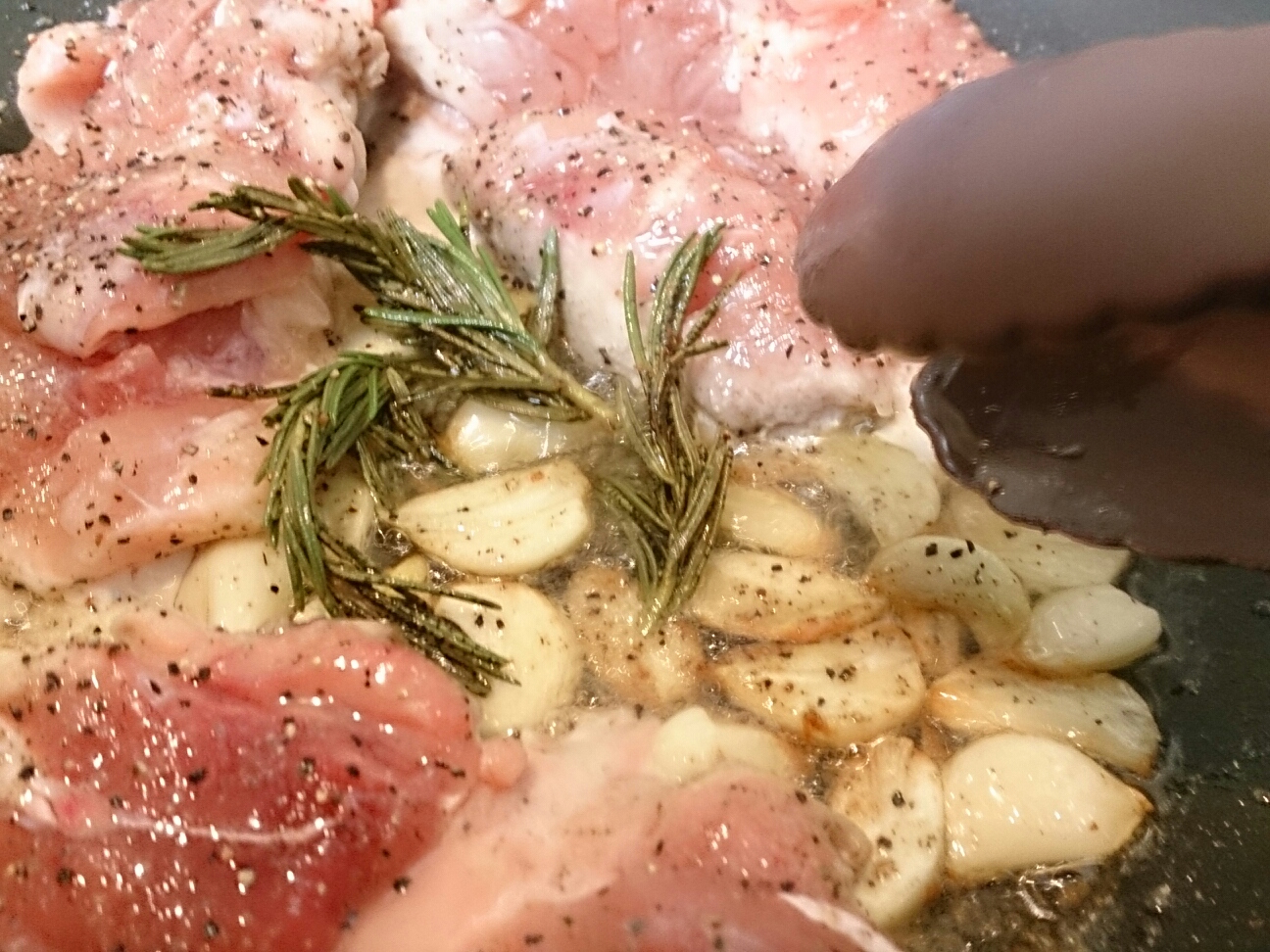 ローズマリーは焦げるのでにくの上に乗せちゃって!