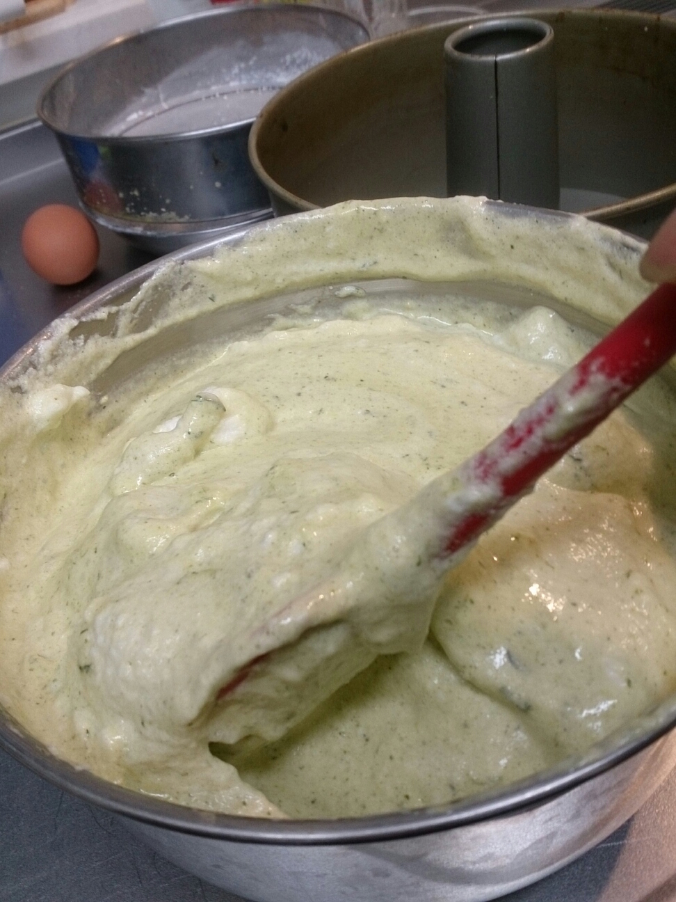 生地にきのう作ったよもぎペーストをわさっと入れてみました。