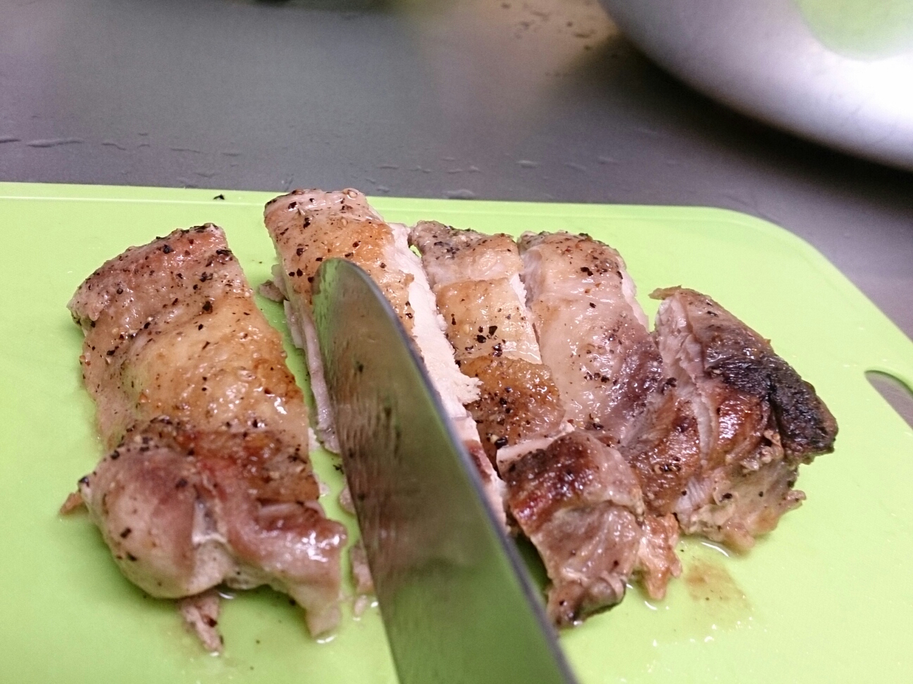 更に全体に塩胡椒を。ソースの塩気にもなるので