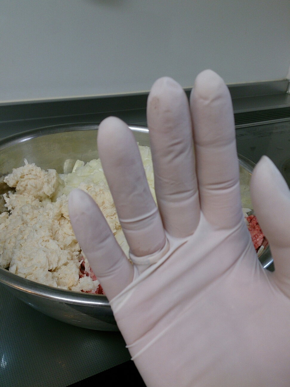 ・ 牛乳に浸したパン粉(または千切った食パン)