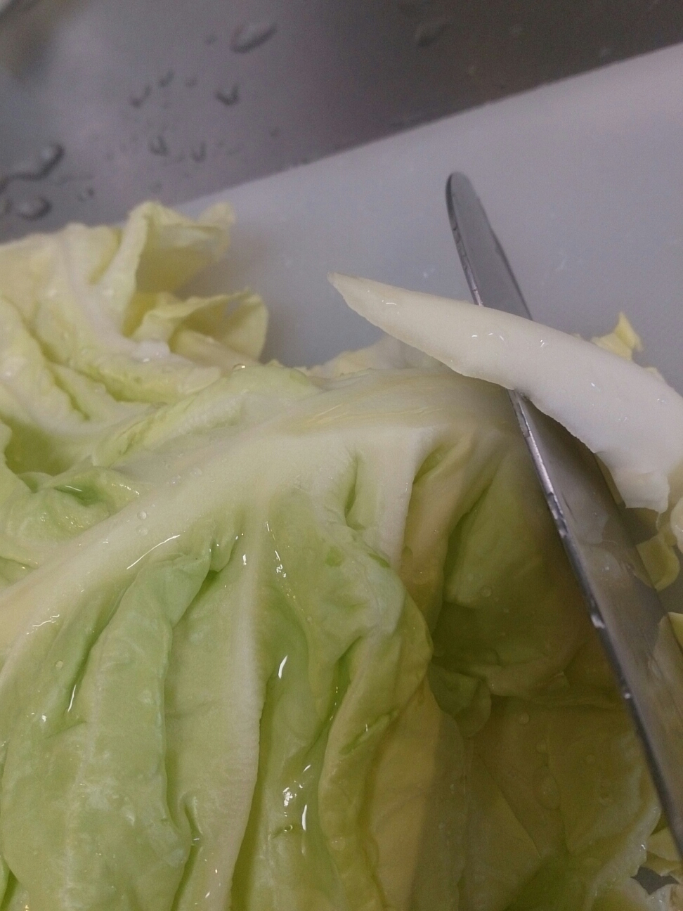 芯の部分は硬くて太いので薄くなるよう削ぎ切ります。