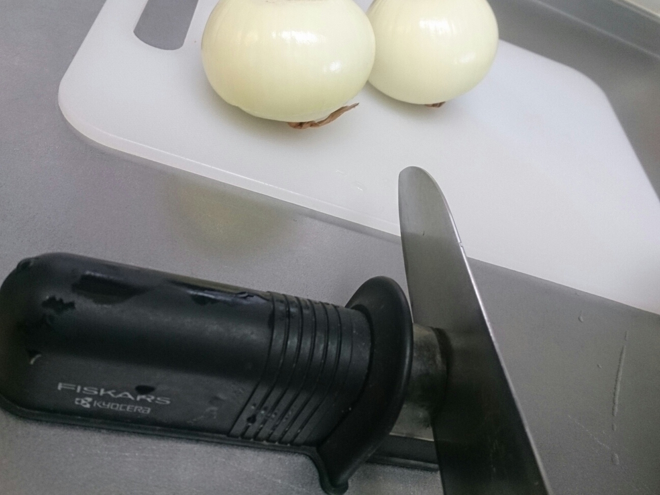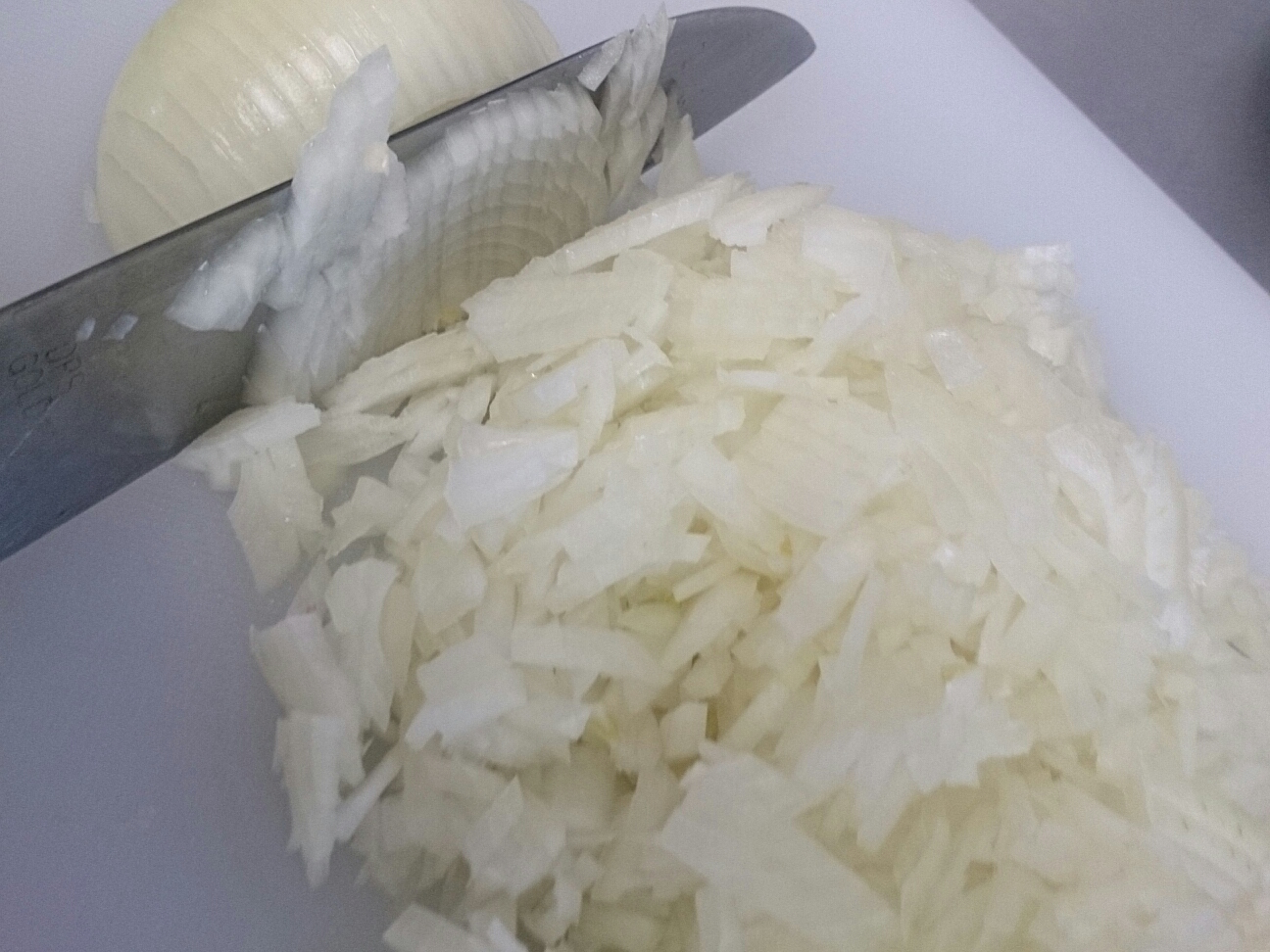 玉ねぎをみじん切りにする前と、トマトをスライスする前、