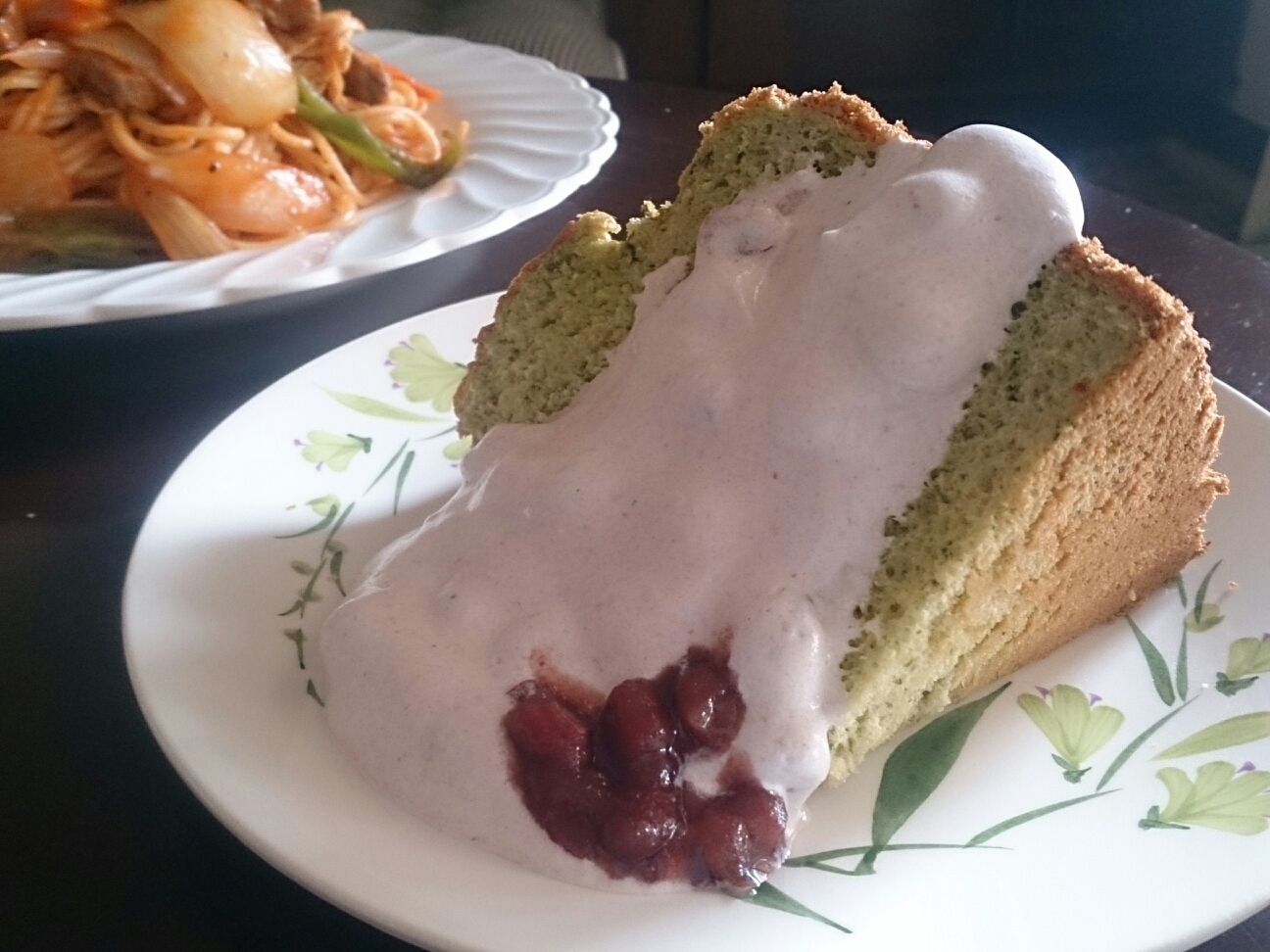 7分立ての生クリームには砂糖を入れずにあずきを加えています。