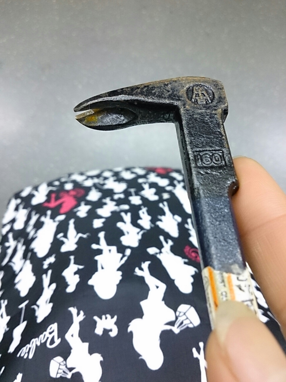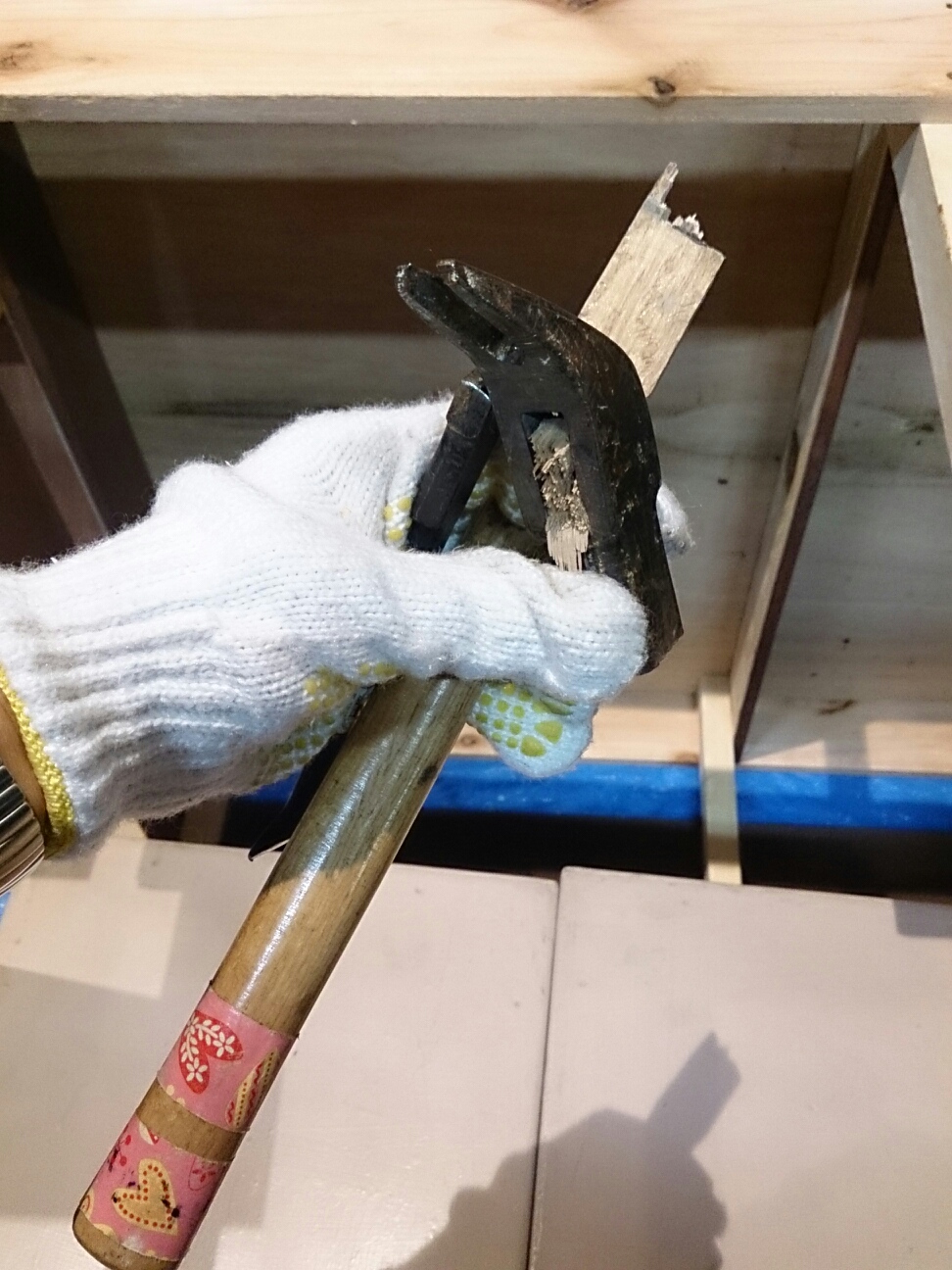 元々打ち込まれてた釘を抜き、新たに太めの釘を打って