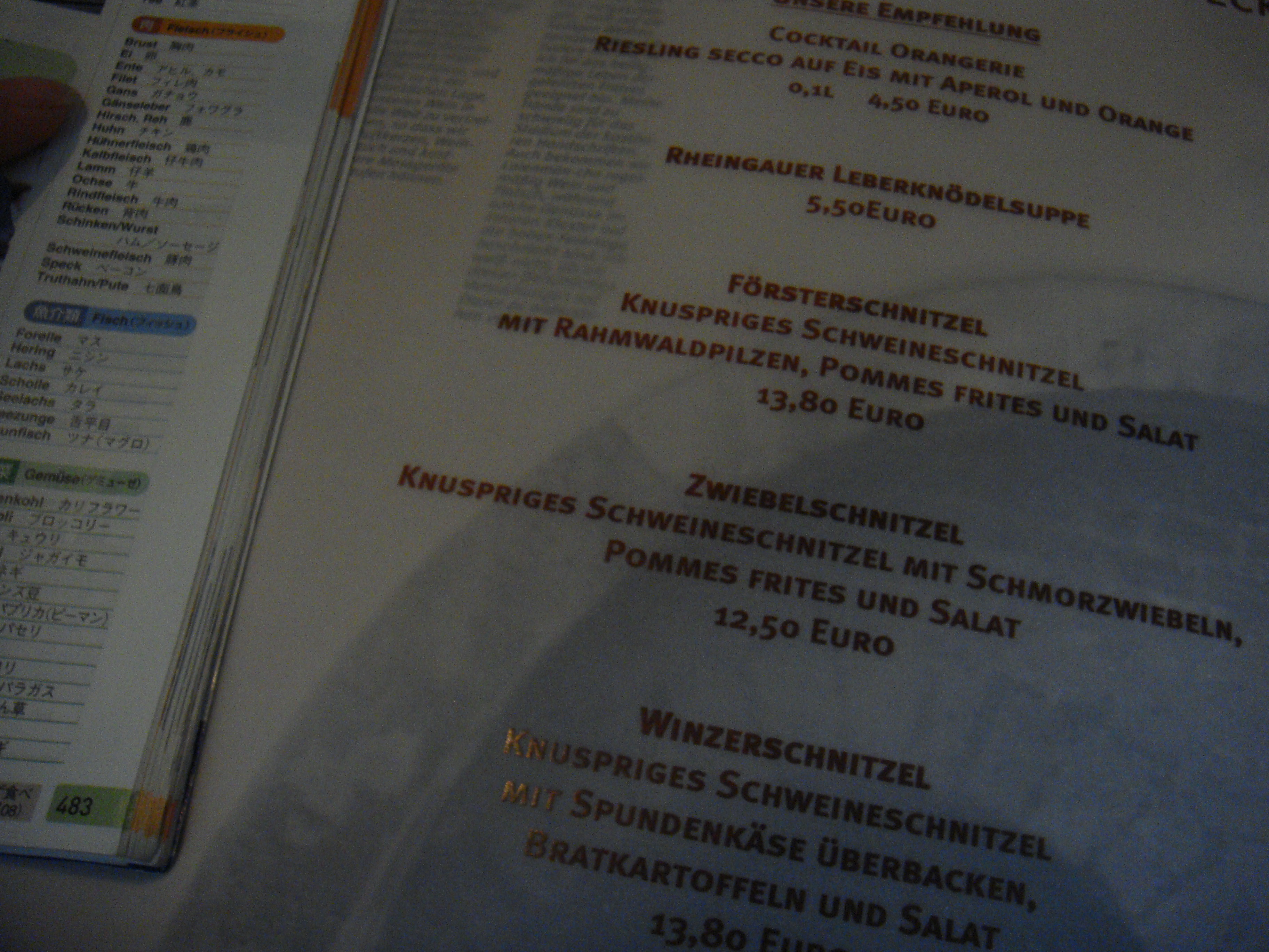 地球の歩き方(バイブル)の巻末には、ドイツ語料理名の翻訳が載っているけど
