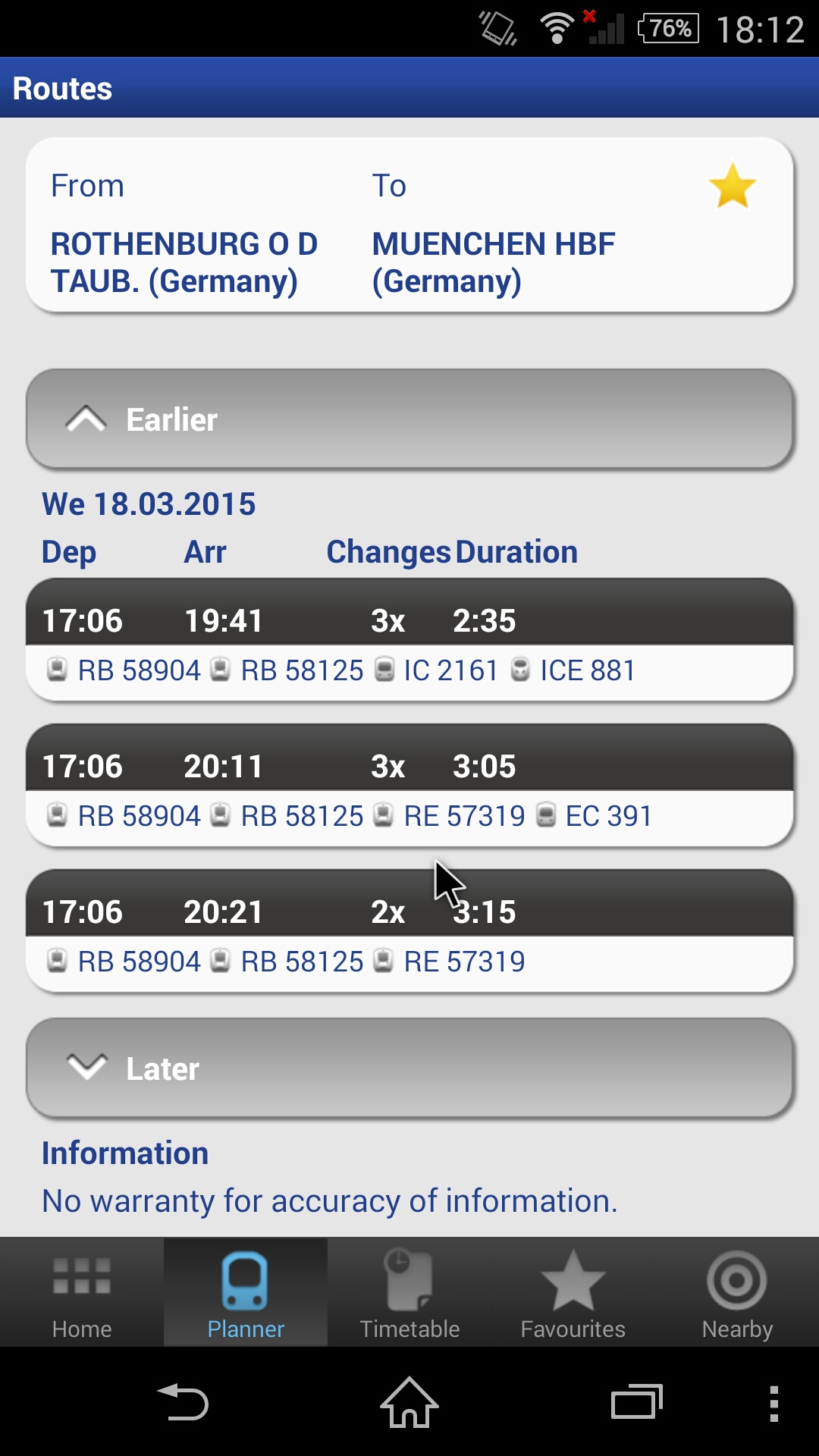 すまほで欧州中の鉄道の乗り換えの検索ができる。