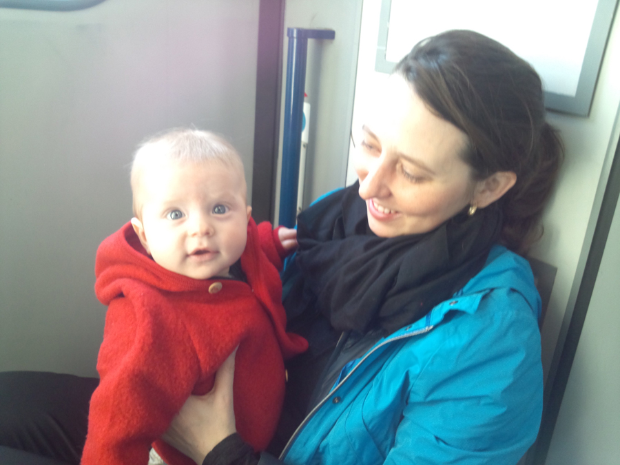 満席になった列車のデッキに、赤ちゃんを抱っこした女性がいらして