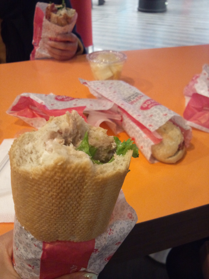 駅構内にはおいしそうなサンドイッチ屋さんやカフェが並んでいた。