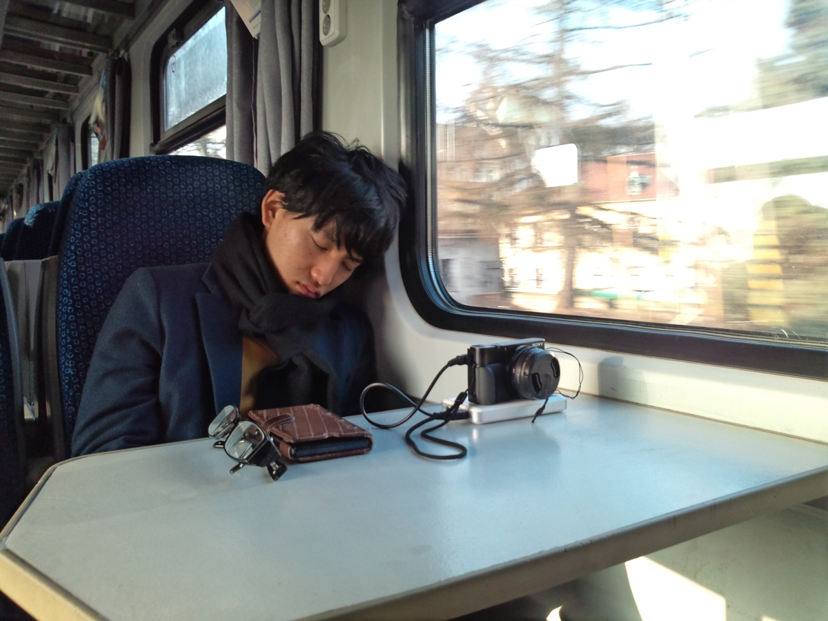 3人でぼけーっと日なたに座って次の列車を待った。
