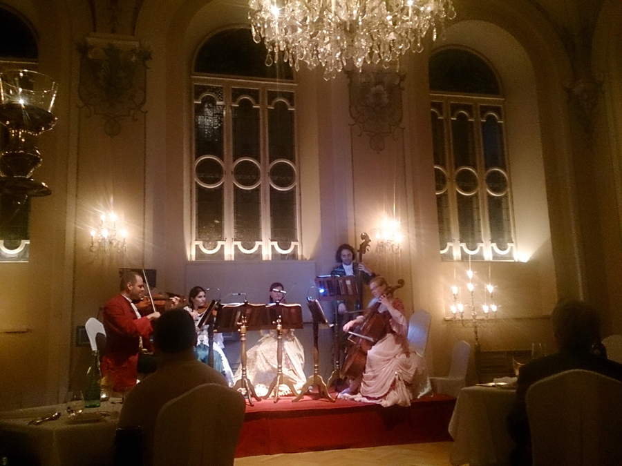 今夜はここで食事をしながらアマデウス楽団のオペラを聞くんやで。