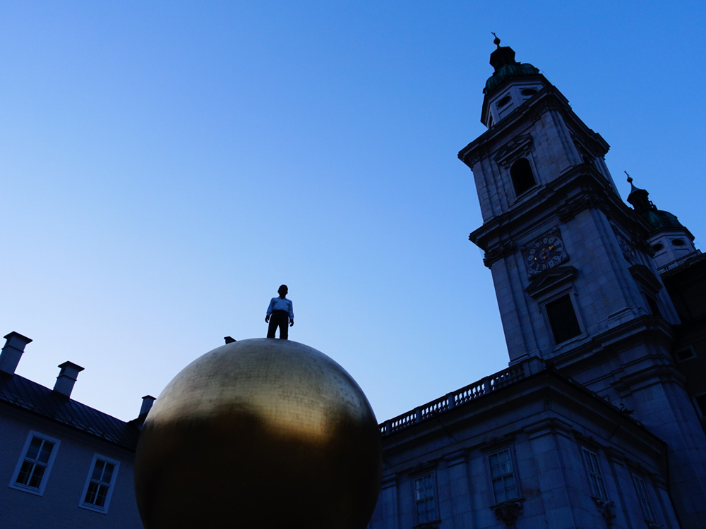 ザルツブルク城前の広場で