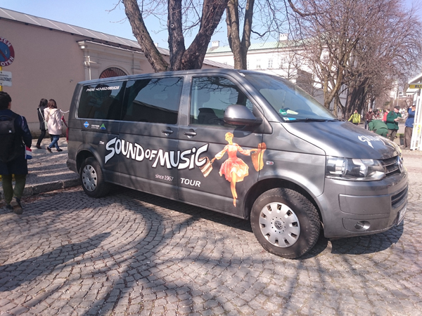 サウンド・オブ・ミュージックのツアーって書かれた車があるよ!