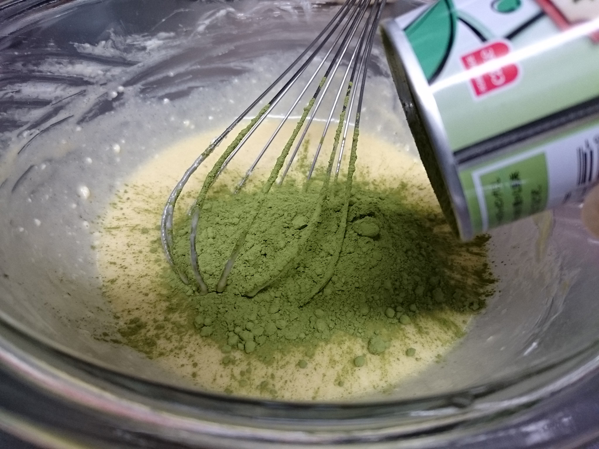 鮮やかな抹茶色を表現するために画像処理して深緑に修正しているようにお見受けする。