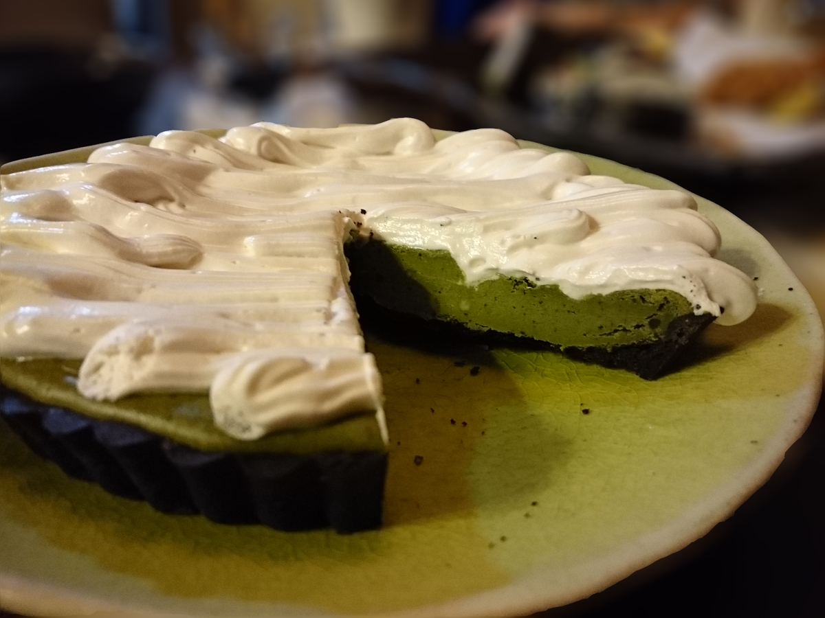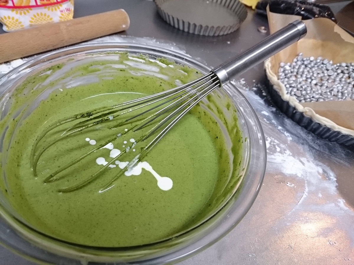 抹茶チーズケーキを焼きながら、並行してキッシュも焼いていた。