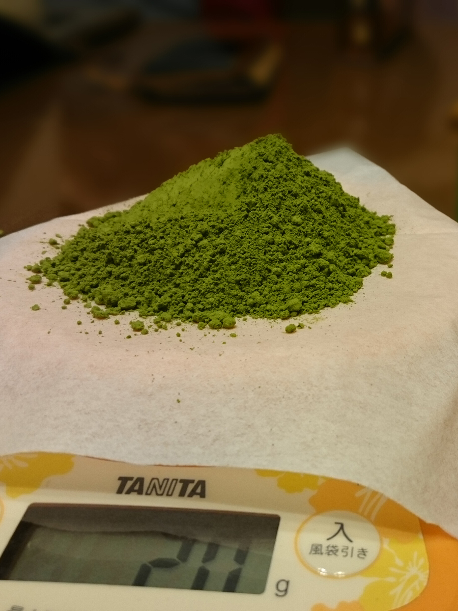 お茶を茶碗一杯点てるのにお抹茶は茶さじ一杯、およそ1.5g使う。