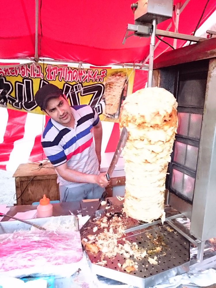 屋台で買い込むで。ケバブ大好きやで。
