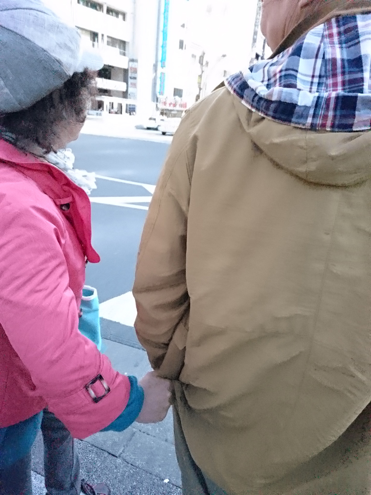 手を繋ぐんやない、