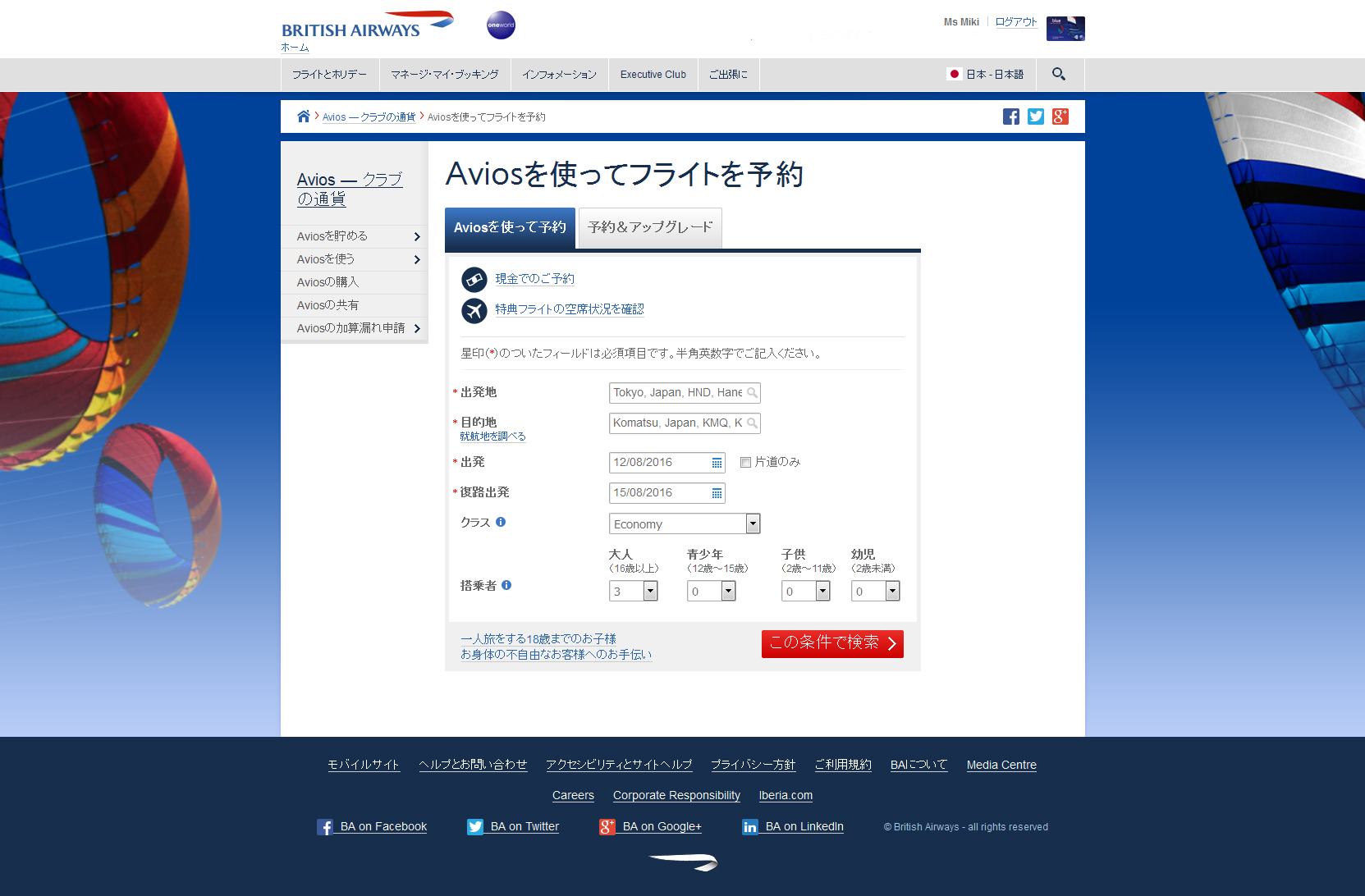 早速BAのサイトで羽田⇔小松を検索してみるです。