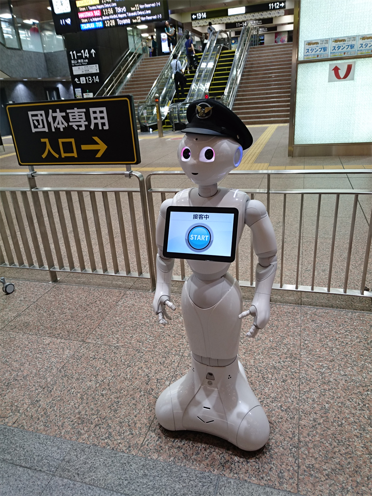 ペッパーくんが駅で案内をしていました。毎日仕事で面倒見ていたので休暇中は会いたくなかった。
