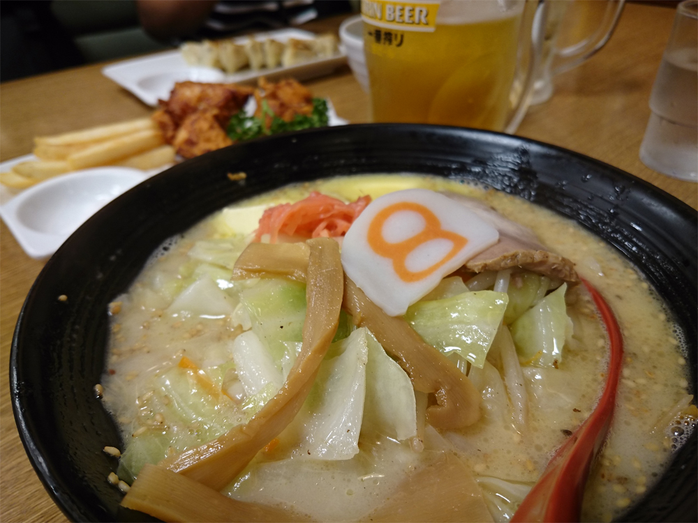 王道は野菜らーめんの味噌バターですが、野菜らーめんとんこつバターダブルが至高。