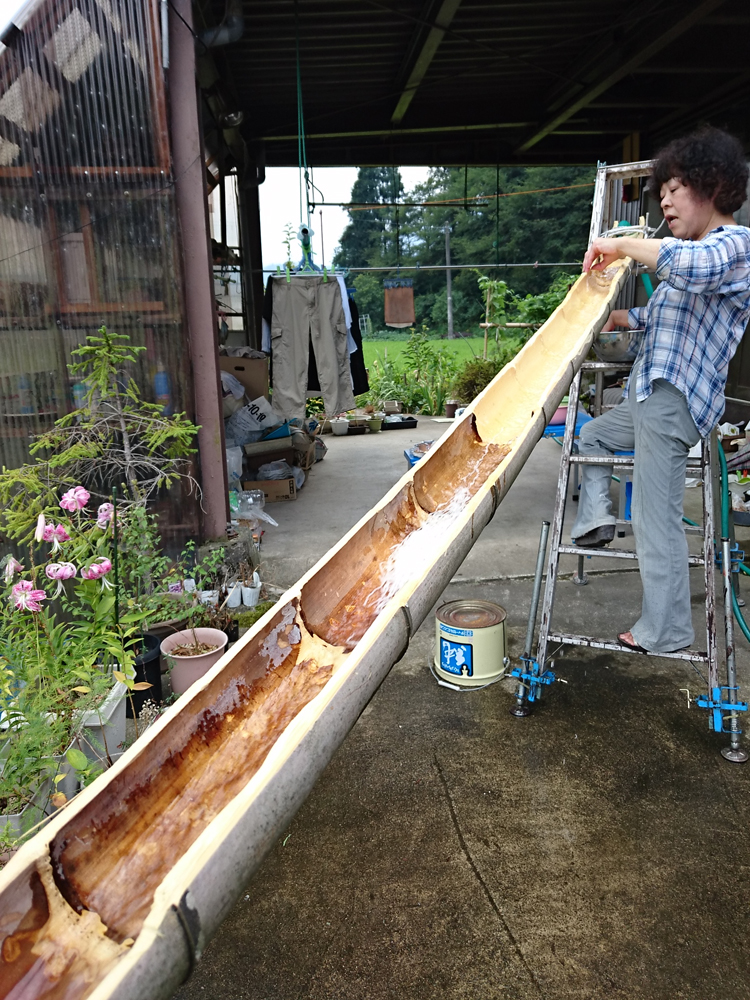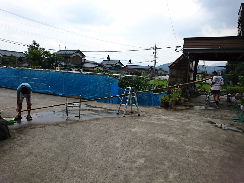 食後は弟と甥っ子が、ランチの流しそうめんの準備を始めました。