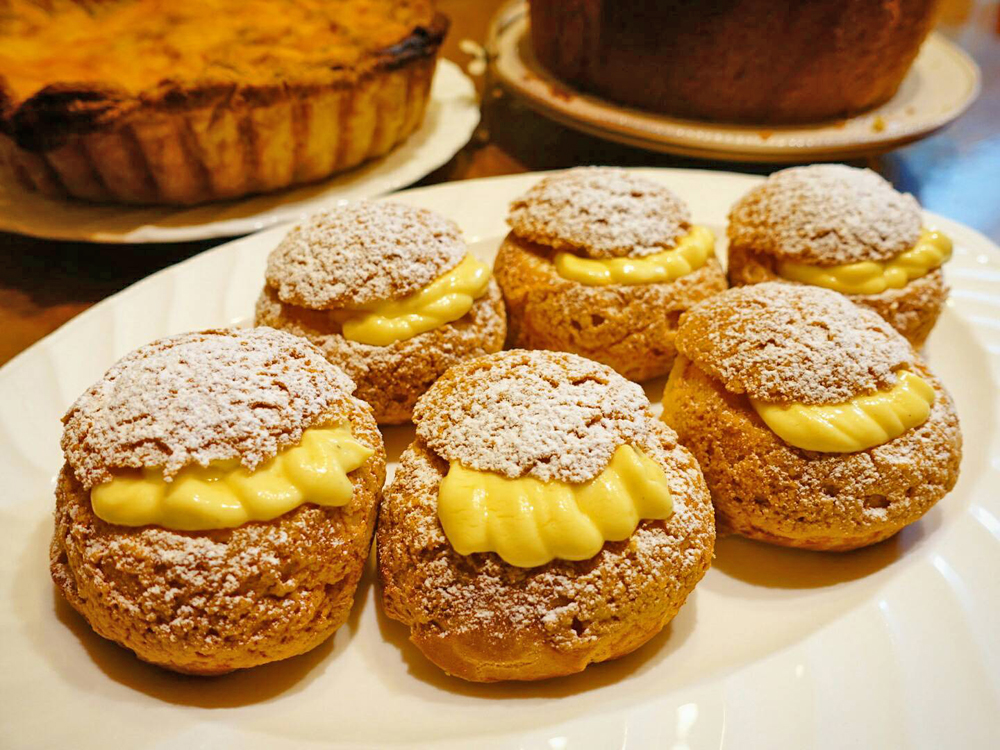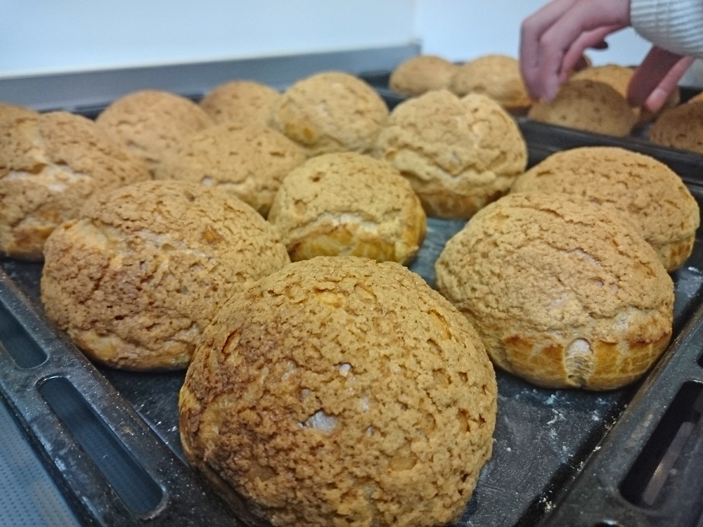 シューの上にクッキー生地を乗せて焼いているのでサクサク食感。