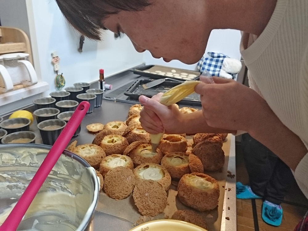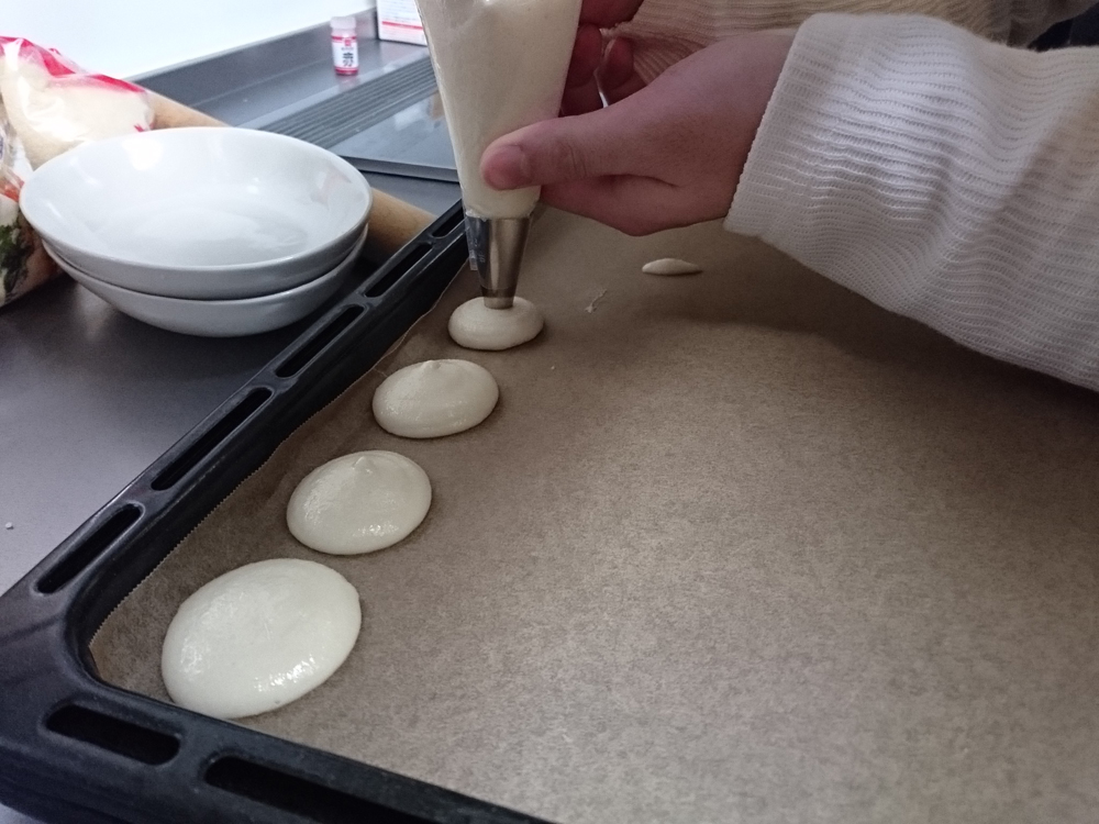 今日はやすいオヌヌメレシピのクッキーシュークリームと、わたしリクエストのマカロンを教授していただく。