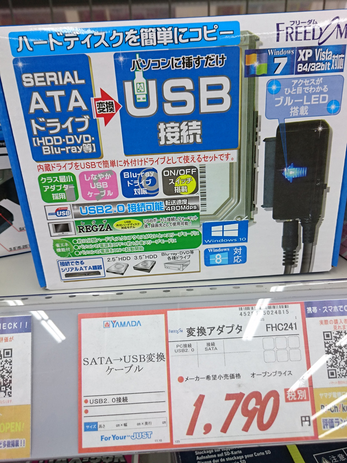 でもたったひとつのファイルを救出するために払うには高いケーブル代です。血の涙を流しつつ買います。