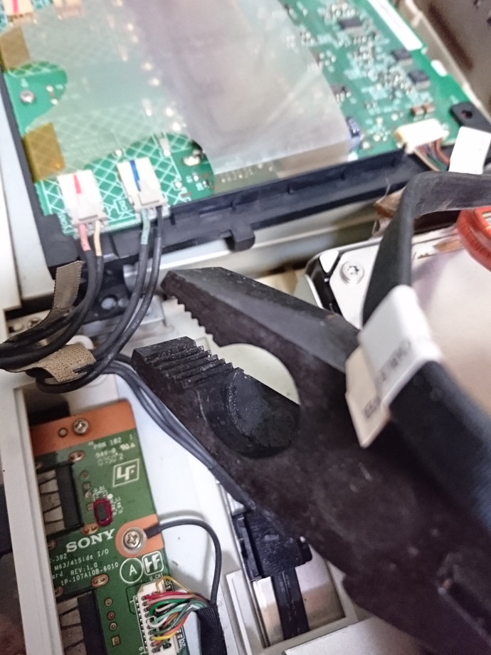 その辺のケーブルもサクサク切り、突起物をニッパーでぐりぐり潰して