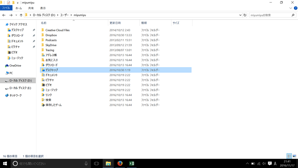 デスクトップのフォルダ。