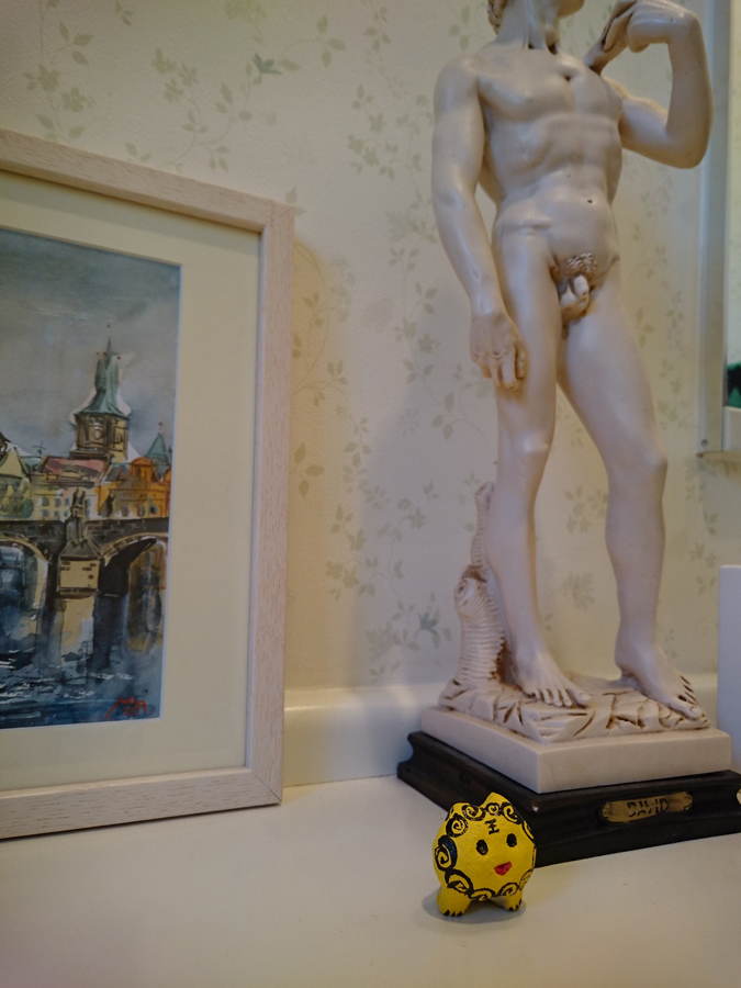 ダビデくんを警護するシーサーさんやで!
