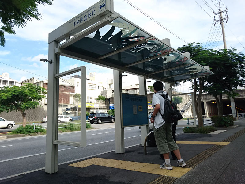 モノレールの旭橋駅から上泉までバスに乗るんだけど、バスターミナル工事中で上泉行きのバス停を見つけるのに一苦労する。