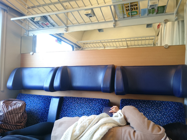 ねぶそくに加え、長時間列車に乗りっぱなしってすごく疲れるのね。