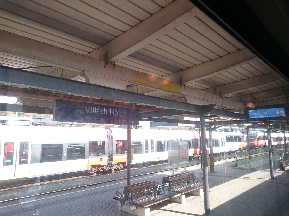 フィラッハ中央駅、ここがイタリアとの国境近く。