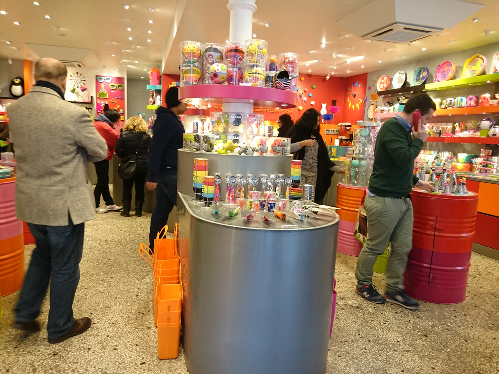 イタリアチックな派手な色使いの雑貨屋さん。