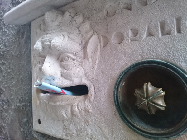 新聞を差し込んだら手を食われそうなポスト。