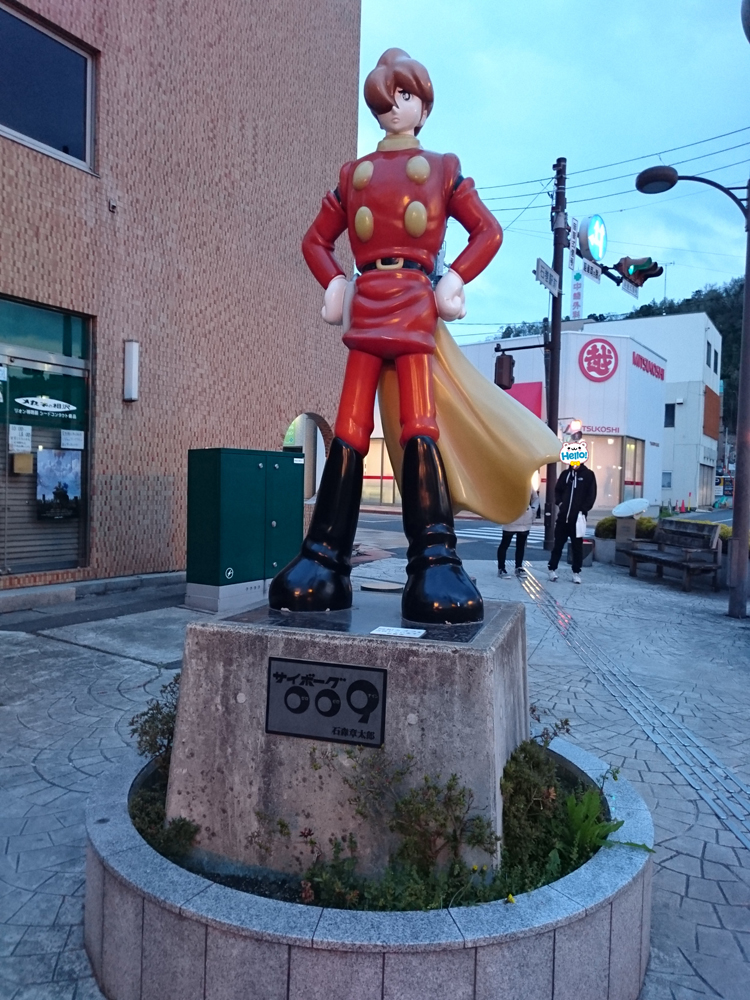 「あっ、あなた。さっき駅前で009の像を撮ってたよね?」