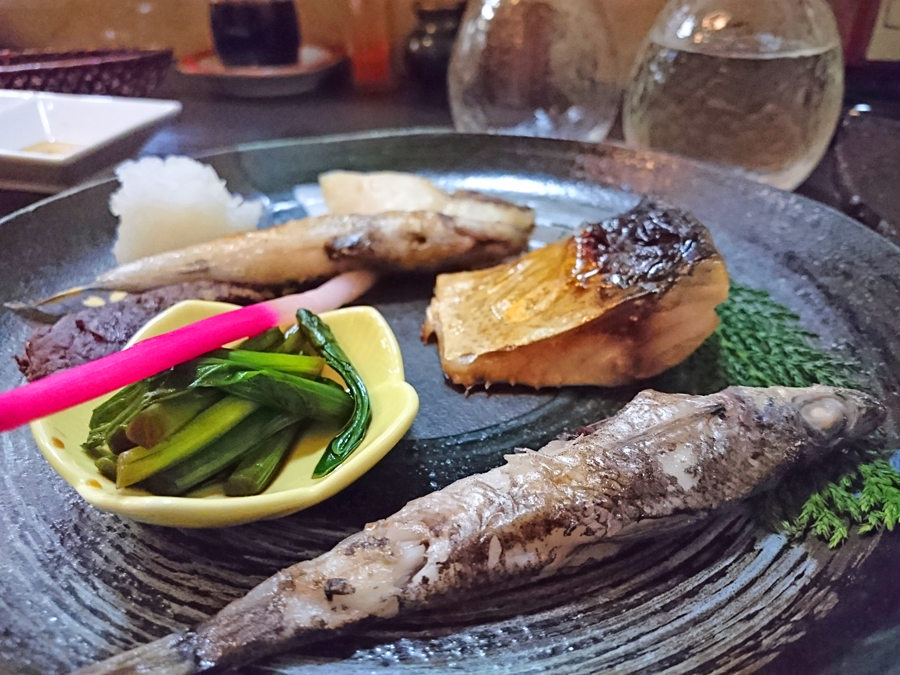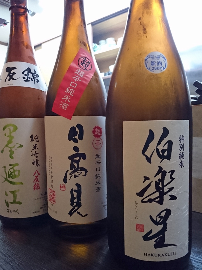 手前と奥のお魚は初めて食べるもので、辛口の日高見と相性最高。