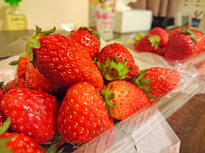 おなかぽんぽんなのに、実はさっきのお店に入る前に苺を買ってしまっていました。