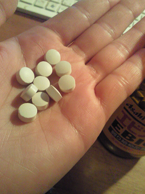 ザラザラと10錠を流しこむのは
