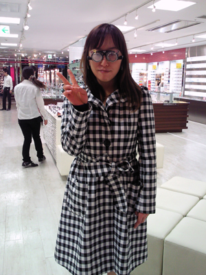 黒ぶちか色付きかを迷ってた時、あたしの服装をご覧になられて